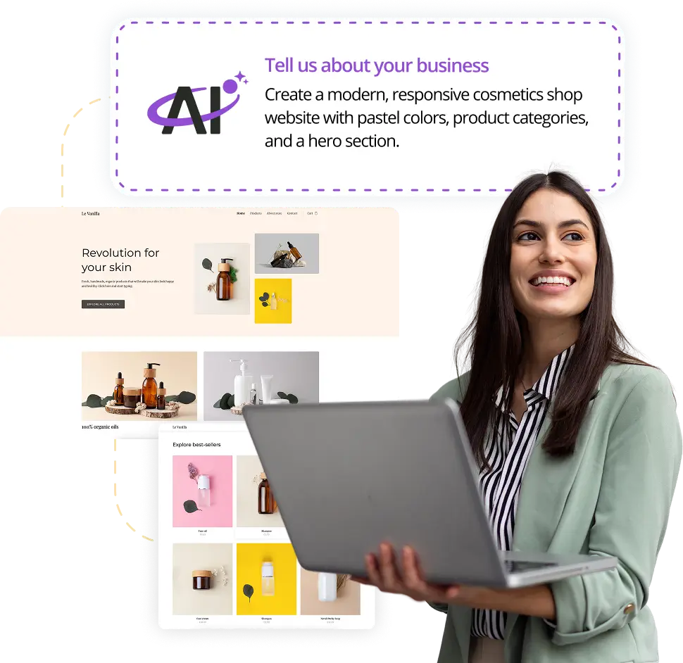 After asking you just a few simple questions, the AI generates a website tailored to your business. Every step is guided, so creating your site is easy, intuitive and stress-free - even if you’ve never built a website before.