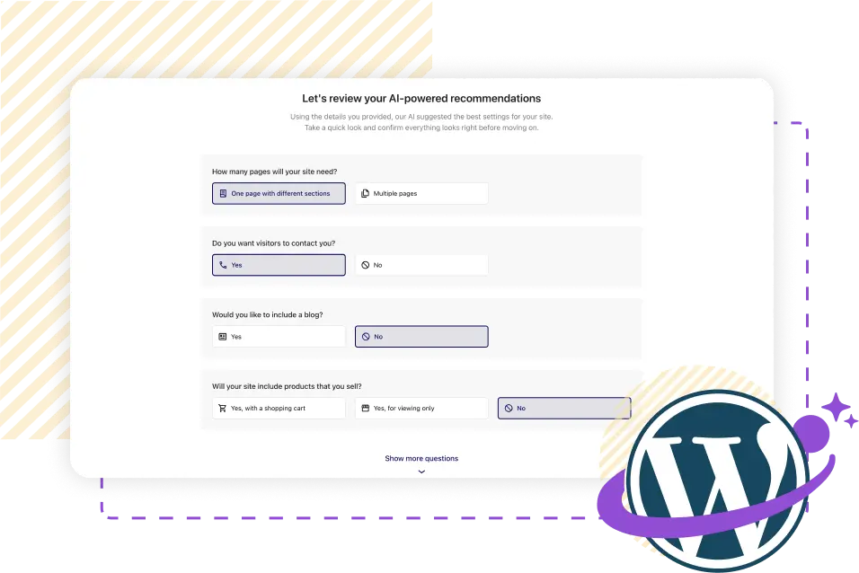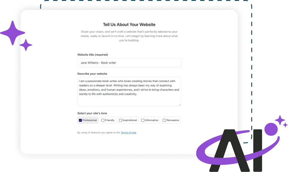 You don’t need to be a techie or a programmer to use AI Site Assistant. You just need to be able to answer a few simple questions about who you are and what you want to do with your website. That’s it!